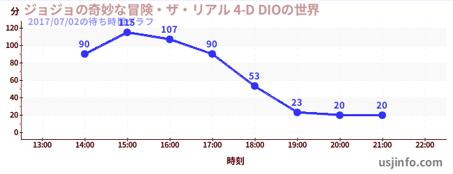 • ジョジョの奇妙な冒険・ザ・リアル 4-D DIOの世界$B$N(B2017年07月02日の待ち時間