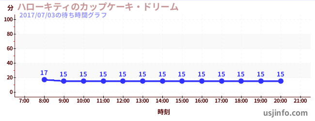 • ハローキティのカップケーキ・ドリーム$B$N(B2017年07月03日の待ち時間