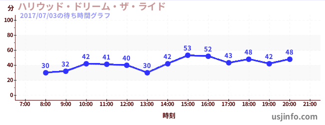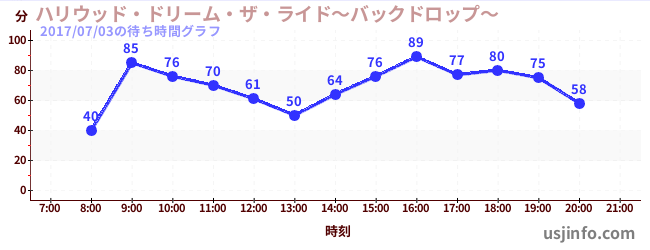 • ハリウッド・ドリーム・ザ・ライド〜バックドロップ〜$B$N(B2017年07月03日の待ち時間