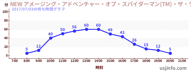 • NEW アメージング・アドベンチャー・オブ・スパイダーマン(TM)・ザ・ライド 4K3D$B$N(B2017年07月03日の待ち時間