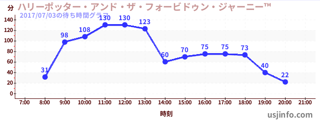 • ハリーポッター・アンド・ザ・フォービドゥン・ジャーニー™$B$N(B2017年07月03日の待ち時間