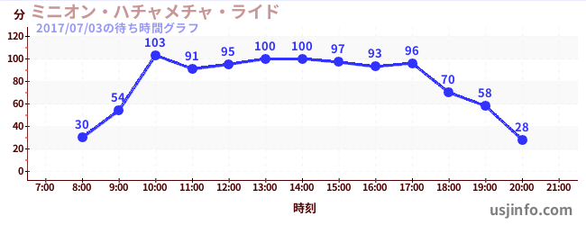 • ミニオン・ハチャメチャ・ライド$B$N(B2017年07月03日の待ち時間