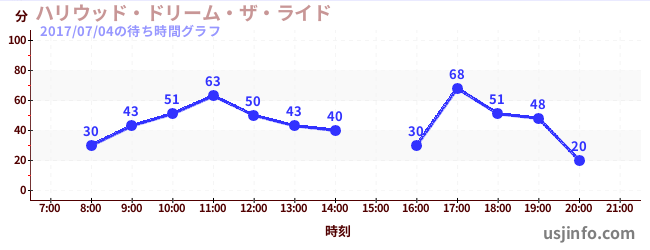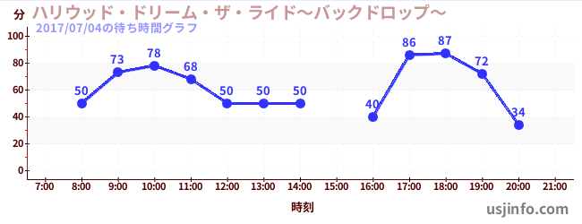 • ハリウッド・ドリーム・ザ・ライド〜バックドロップ〜$B$N(B2017年07月04日の待ち時間