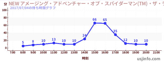 • NEW アメージング・アドベンチャー・オブ・スパイダーマン(TM)・ザ・ライド 4K3D$B$N(B2017年07月04日の待ち時間