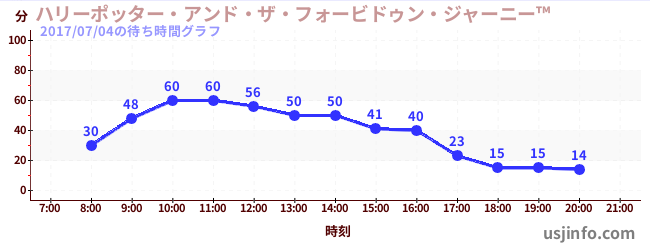 • ハリーポッター・アンド・ザ・フォービドゥン・ジャーニー™$B$N(B2017年07月04日の待ち時間