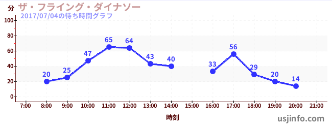 • ザ・フライング・ダイナソー$B$N(B2017年07月04日の待ち時間