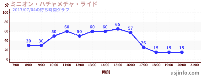 • ミニオン・ハチャメチャ・ライド$B$N(B2017年07月04日の待ち時間