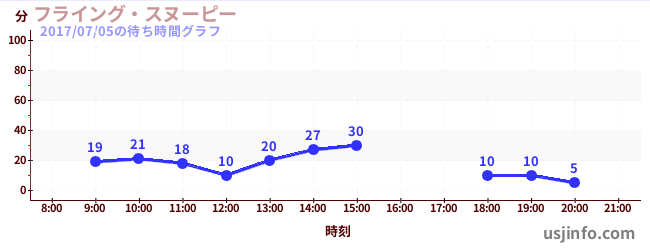 • フライング・スヌーピー$B$N(B2017年07月05日の待ち時間