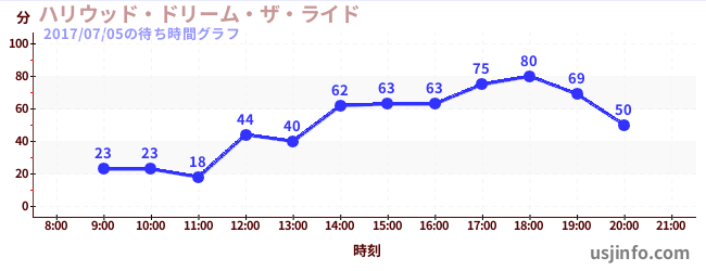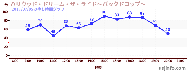 • ハリウッド・ドリーム・ザ・ライド〜バックドロップ〜$B$N(B2017年07月05日の待ち時間
