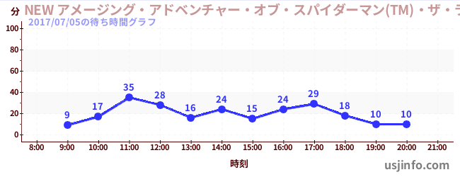 • NEW アメージング・アドベンチャー・オブ・スパイダーマン(TM)・ザ・ライド 4K3D$B$N(B2017年07月05日の待ち時間