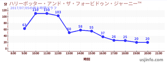 • ハリーポッター・アンド・ザ・フォービドゥン・ジャーニー™$B$N(B2017年07月05日の待ち時間
