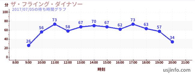• ザ・フライング・ダイナソー$B$N(B2017年07月05日の待ち時間