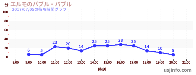 • エルモのバブル・バブル$B$N(B2017年07月05日の待ち時間