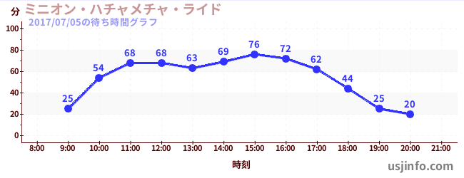 • ミニオン・ハチャメチャ・ライド$B$N(B2017年07月05日の待ち時間