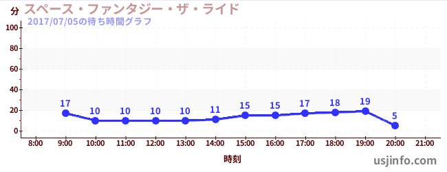 • スペース・ファンタジー・ザ・ライド$B$N(B2017年07月05日の待ち時間
