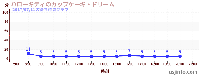 • ハローキティのカップケーキ・ドリーム$B$N(B2017年07月11日の待ち時間