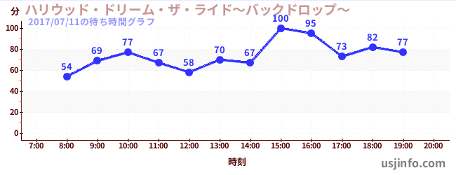 • ハリウッド・ドリーム・ザ・ライド〜バックドロップ〜$B$N(B2017年07月11日の待ち時間