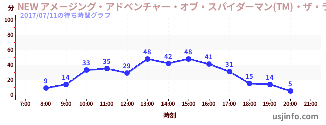 • NEW アメージング・アドベンチャー・オブ・スパイダーマン(TM)・ザ・ライド 4K3D$B$N(B2017年07月11日の待ち時間