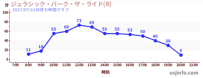 • ジュラシック・パーク・ザ・ライド(R)$B$N(B2017年07月11日の待ち時間