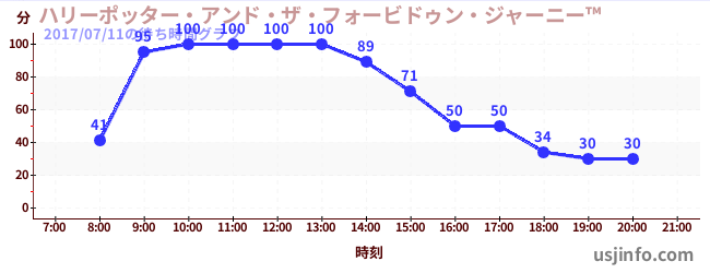 • ハリーポッター・アンド・ザ・フォービドゥン・ジャーニー™$B$N(B2017年07月11日の待ち時間