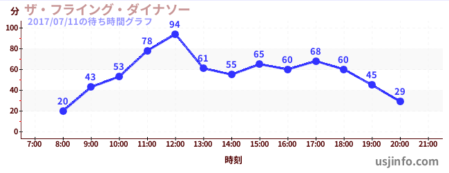 • ザ・フライング・ダイナソー$B$N(B2017年07月11日の待ち時間