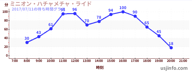 • ミニオン・ハチャメチャ・ライド$B$N(B2017年07月11日の待ち時間