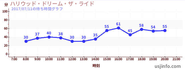• ハリウッド・ドリーム・ザ・ライド$B$N(B2017年07月11日の待ち時間