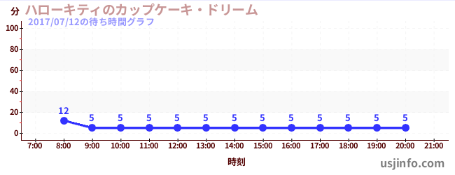 • ハローキティのカップケーキ・ドリーム$B$N(B2017年07月12日の待ち時間