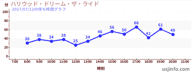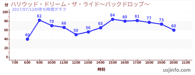 • ハリウッド・ドリーム・ザ・ライド〜バックドロップ〜$B$N(B2017年07月12日の待ち時間