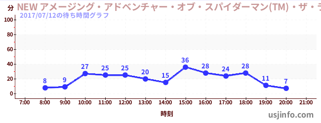 • NEW アメージング・アドベンチャー・オブ・スパイダーマン(TM)・ザ・ライド 4K3D$B$N(B2017年07月12日の待ち時間