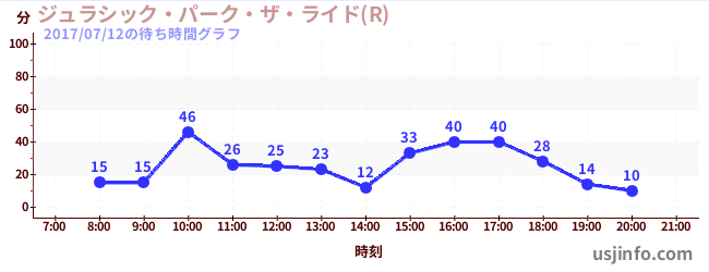 • ジュラシック・パーク・ザ・ライド(R)$B$N(B2017年07月12日の待ち時間