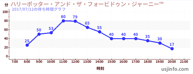 • ハリーポッター・アンド・ザ・フォービドゥン・ジャーニー™$B$N(B2017年07月12日の待ち時間