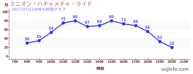 • ミニオン・ハチャメチャ・ライド$B$N(B2017年07月12日の待ち時間