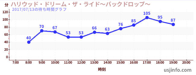 • ハリウッド・ドリーム・ザ・ライド〜バックドロップ〜$B$N(B2017年07月13日の待ち時間