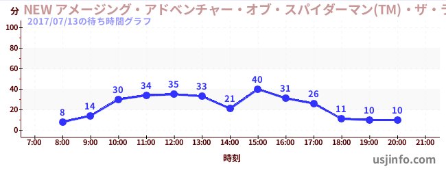 • NEW アメージング・アドベンチャー・オブ・スパイダーマン(TM)・ザ・ライド 4K3D$B$N(B2017年07月13日の待ち時間