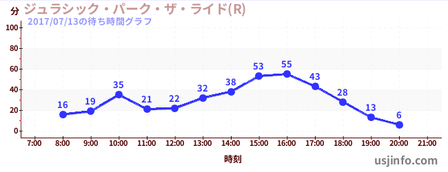 • ジュラシック・パーク・ザ・ライド(R)$B$N(B2017年07月13日の待ち時間