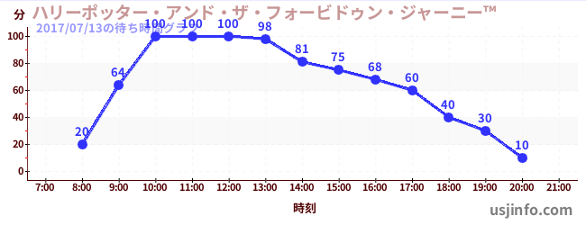 • ハリーポッター・アンド・ザ・フォービドゥン・ジャーニー™$B$N(B2017年07月13日の待ち時間