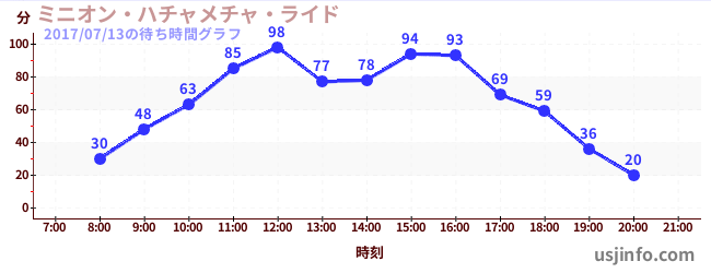 • ミニオン・ハチャメチャ・ライド$B$N(B2017年07月13日の待ち時間