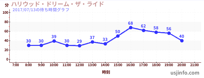 • ハリウッド・ドリーム・ザ・ライド$B$N(B2017年07月13日の待ち時間