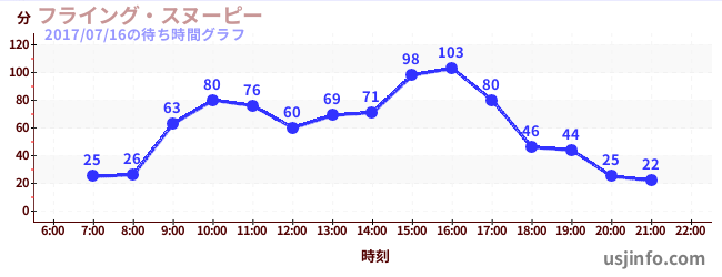 • フライング・スヌーピー$B$N(B2017年07月16日の待ち時間