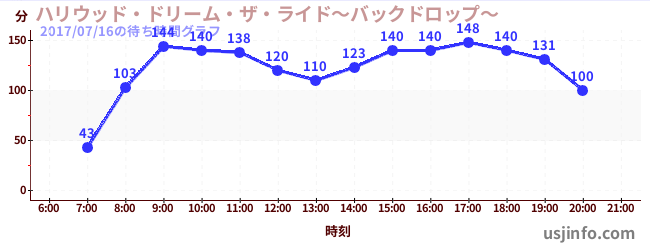 • ハリウッド・ドリーム・ザ・ライド〜バックドロップ〜$B$N(B2017年07月16日の待ち時間