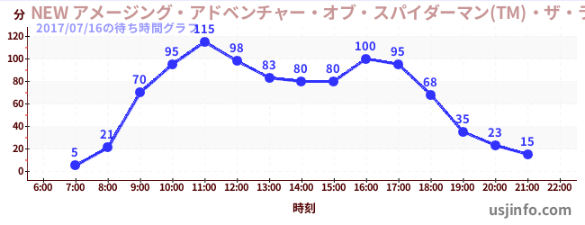 • NEW アメージング・アドベンチャー・オブ・スパイダーマン(TM)・ザ・ライド 4K3D$B$N(B2017年07月16日の待ち時間