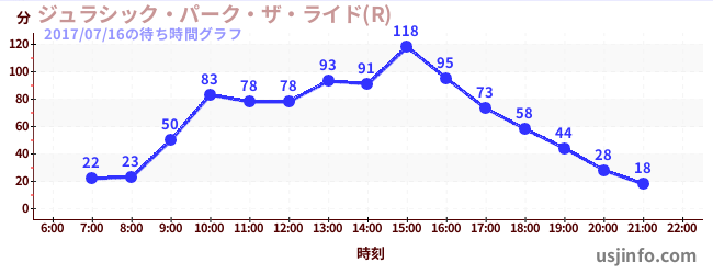 • ジュラシック・パーク・ザ・ライド(R)$B$N(B2017年07月16日の待ち時間
