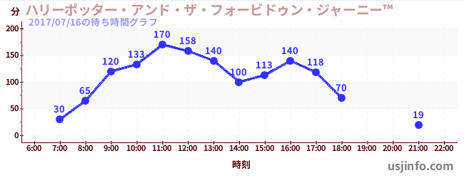 • ハリーポッター・アンド・ザ・フォービドゥン・ジャーニー™$B$N(B2017年07月16日の待ち時間