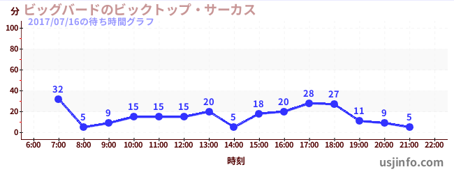 • ビッグバードのビックトップ・サーカス$B$N(B2017年07月16日の待ち時間