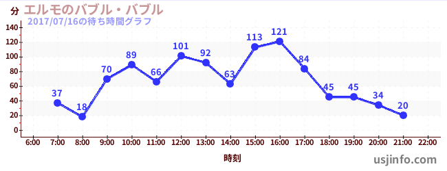 • エルモのバブル・バブル$B$N(B2017年07月16日の待ち時間