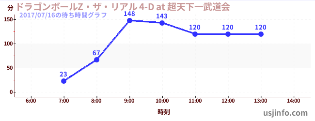 • ドラゴンボールZ・ザ・リアル 4-D at 超天下一武道会$B$N(B2017年07月16日の待ち時間