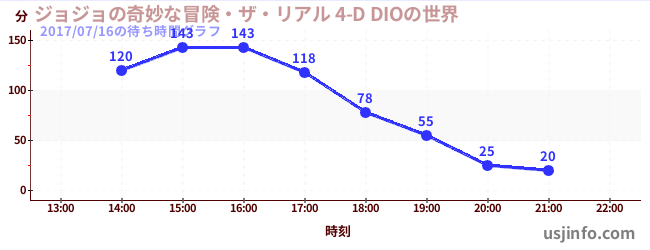 • ジョジョの奇妙な冒険・ザ・リアル 4-D DIOの世界$B$N(B2017年07月16日の待ち時間