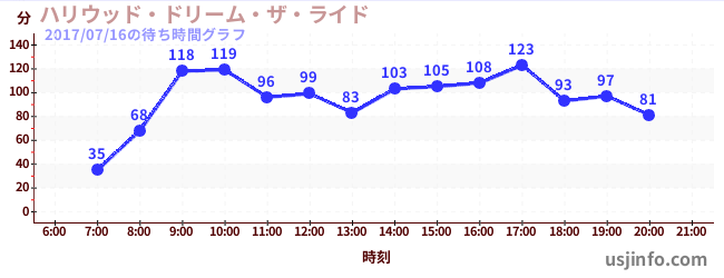 • ハリウッド・ドリーム・ザ・ライド$B$N(B2017年07月16日の待ち時間