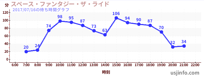 • スペース・ファンタジー・ザ・ライド$B$N(B2017年07月16日の待ち時間